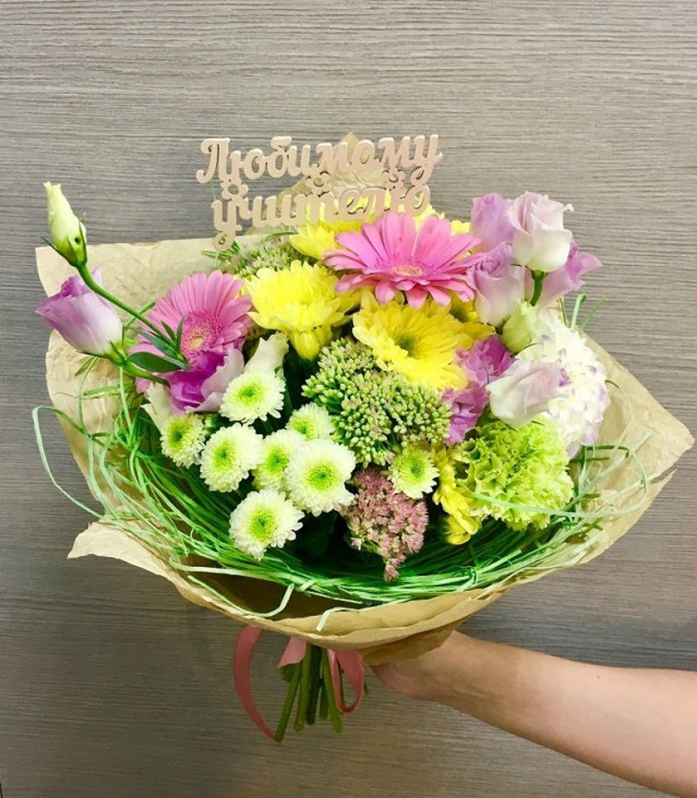 Поздравить учителя стандартно можно с помощью обычного букета. А если нужно запомниться и оставить неизгладимое впечатление (в положительном смысле), тогда лучше преподнести эксклюзивный букет в виде снопика или корзинки.